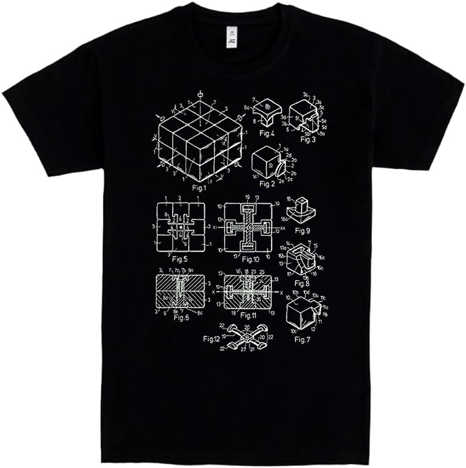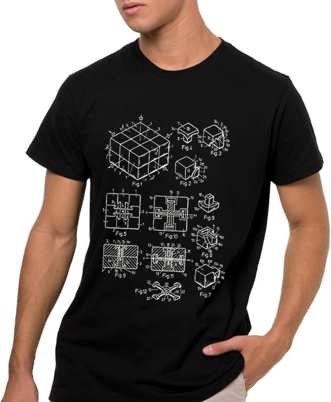 Cubo Camiseta de Manga Corta, 100% Algodón, Ropa Unisex para Hombres y Mujeres en 7 Tallas, Camiseta Negra, Modelo RUBIK CUBE , cubo matemáticas