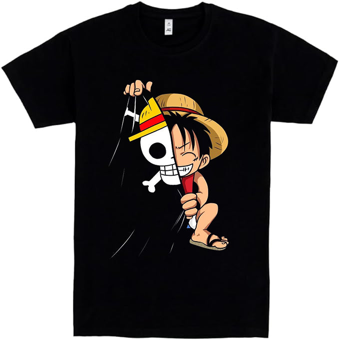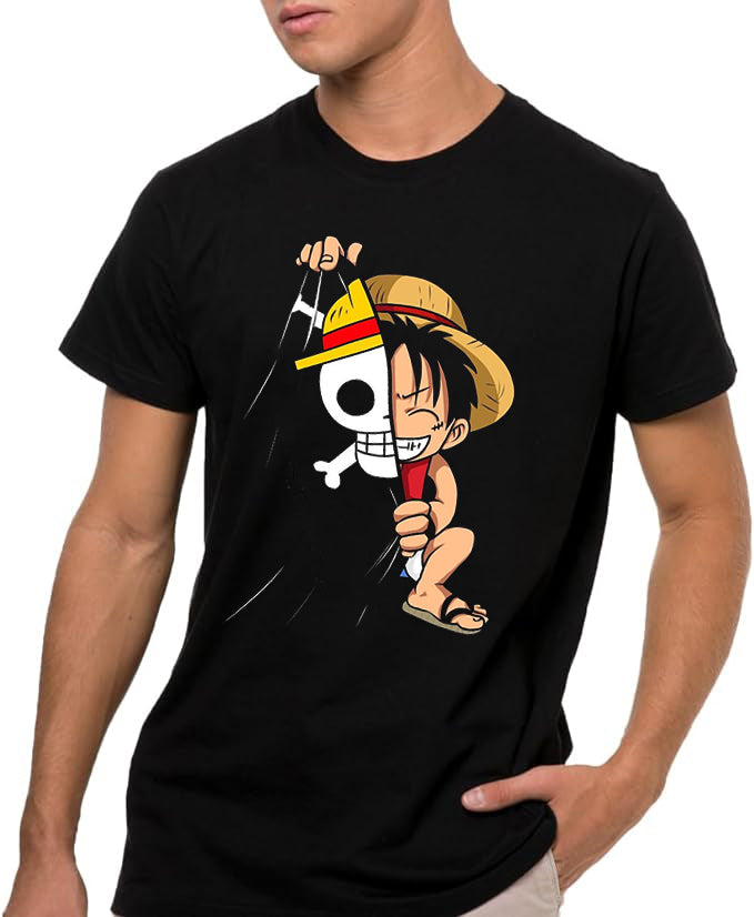 ONEPICE , PIRATA Camiseta de Manga Corta, 100% Algodón, Ropa Unisex para Hombres y Mujeres en 7 Tallas, Camiseta Negra, Modelo PIRATA