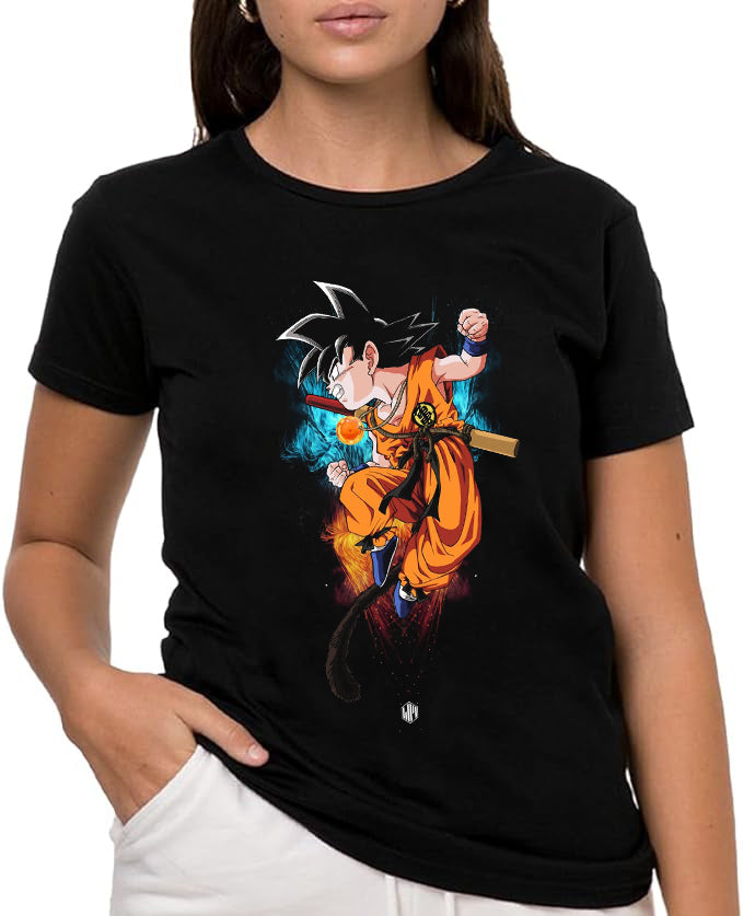 Camiseta de Manga Corta, 100% Algodón, Ropa Unisex para Hombres y Mujeres en 7 Tallas, Camiseta Negra, Modelo dragón, bola de dragón